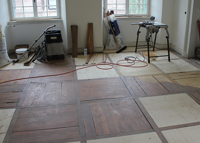 Mit Blick für das Ganze und Liebe zum Detail restaurieren wir in die Jahre gekommene Holzfußböden. Die Beseitigung von kleineren Schäden bis hin zur kompletten Instandsetzung gehören zu unserem Repertoire. Schadhafte Teile werden fachgerecht ersetzt und wenn nötig der Untergrund saniert. Hierbei werden neue Hölzer, passend zum Bestand verwendet. In besonderen Fällen können aber auch alte Hölzer, passend zum Bestand verwendet werden. Die Oberfläche wird geschliffen und neu coloriert, geölt oder versiegelt.